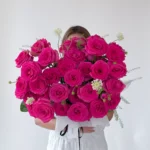 Fuchsia Pink Rose Basket Bouquet (50-60 Roses)