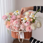 • Peach Rose Basket Bouquet (50-60 Roses)